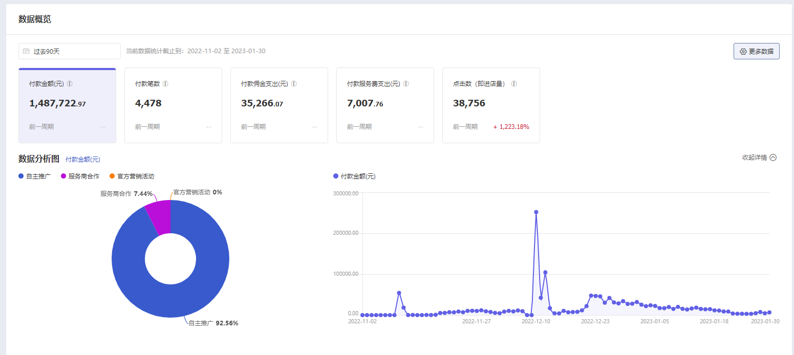 ▲店鋪后臺銷售數(shù)據(jù),由火蝠電商提供