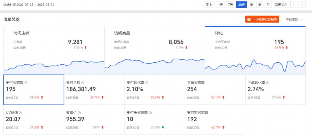 樂(lè)涔通過(guò)多渠道付費(fèi)布局,結(jié)合優(yōu)化店鋪基礎(chǔ)圖片設(shè)置,30天提升店鋪銷(xiāo)售額30%,支付金額上升72%,支付新賣(mài)家增加62.7%,流量提升17%,助力商家成長(zhǎng)。