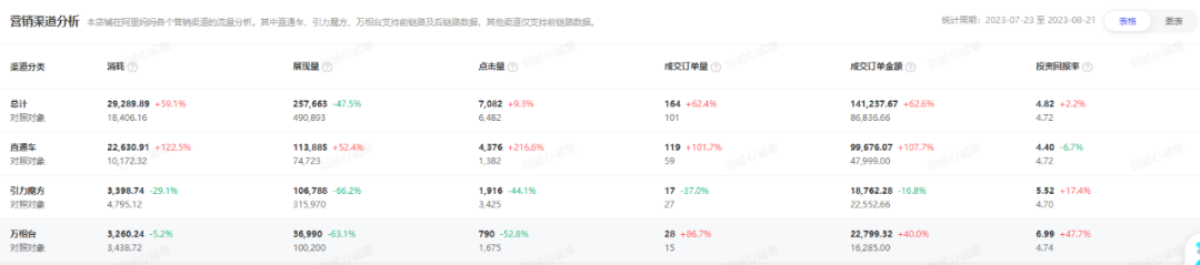 “在今年上半年,推薦流量增長(zhǎng)趨勢(shì)明顯,結(jié)合店鋪競(jìng)品流量分析以及店鋪?zhàn)陨砬闆r,我們?cè)诮邮趾竺嬲{(diào)整店鋪流量結(jié)構(gòu),在保持原有的搜索流量不變的情況下,細(xì)分推薦板塊流量計(jì)劃,為店鋪帶來(lái)新的品類(lèi)機(jī)會(huì)。”