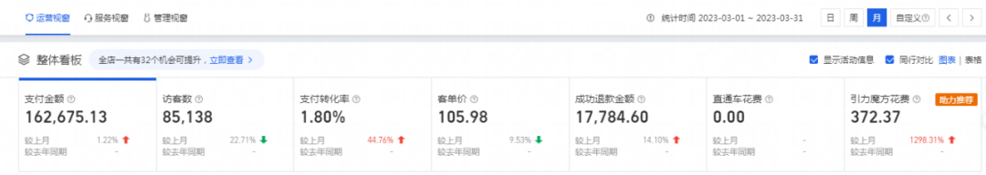 經(jīng)過瑾栩和火蝠團隊的助力下,該店鋪目前的運營狀況: