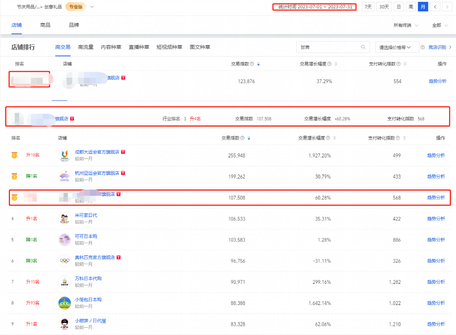 3.創(chuàng)意禮品類目新上榜行業(yè)前100名內(nèi),細分類目上榜行業(yè)第3