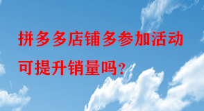 拼多多商家參加活動(dòng)能夠讓店鋪銷量翻倍,如果店鋪營業(yè)很久卻沒有人進(jìn)店購買,參加拼多多官方活動(dòng)能改善店鋪的狀態(tài)。那么今天為您介紹一下拼多多的官方活動(dòng),以及參加活動(dòng)帶給店鋪哪些好處?